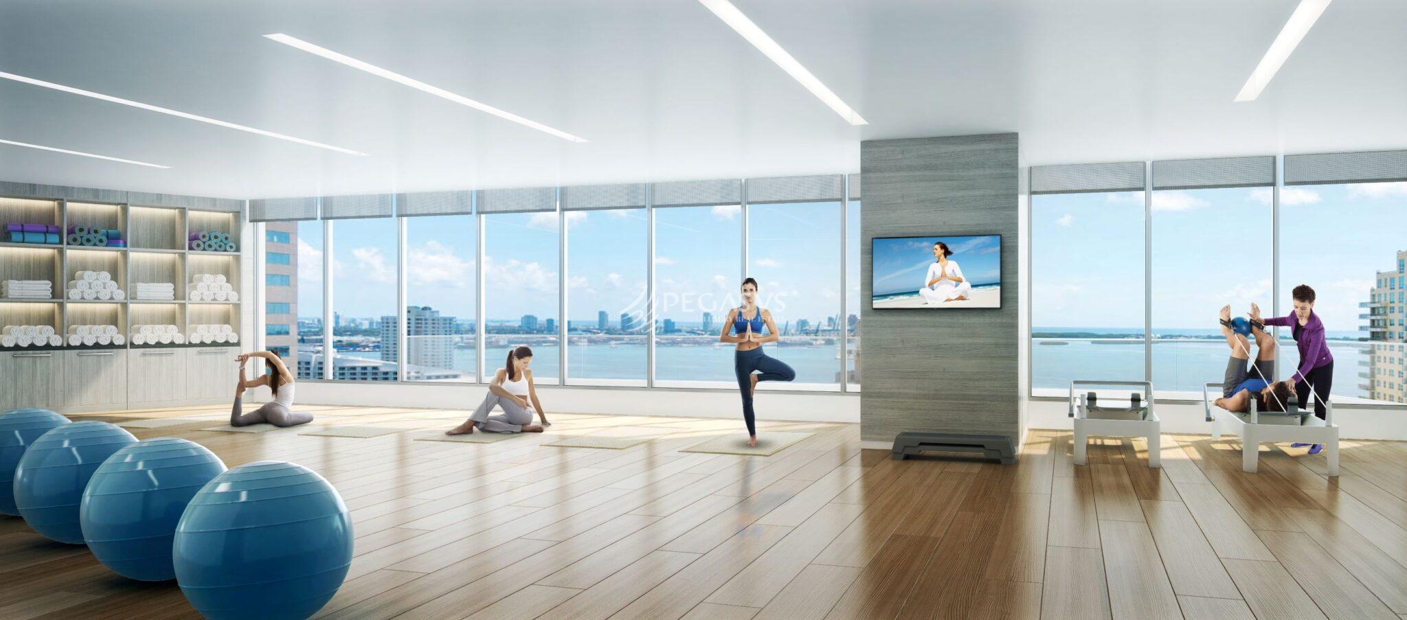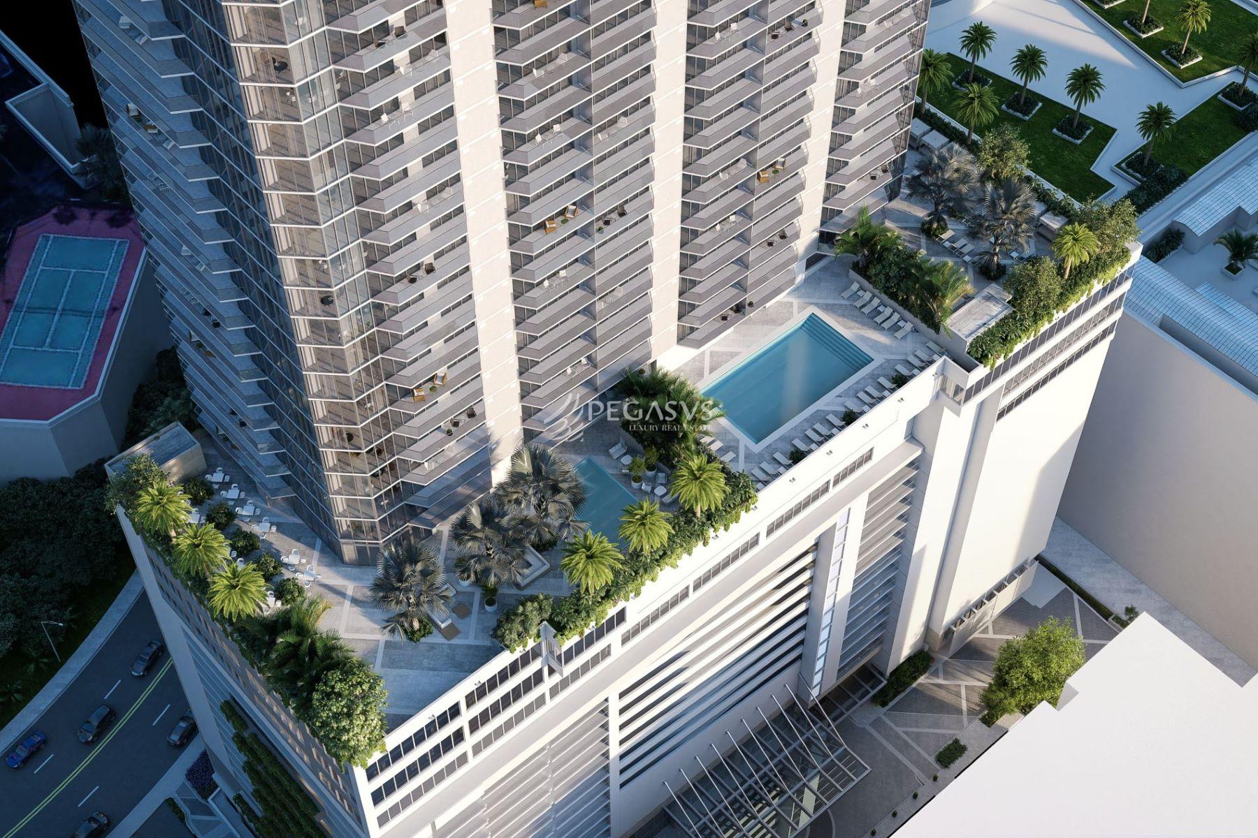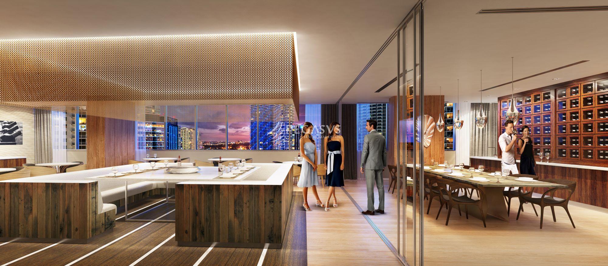 The 22nd-story recreation deck wraps around the entire floor, offering both bayview and sunset pools, private cabanas, and a poolside café and bar. Residents also can reserve two beautifully-furnished