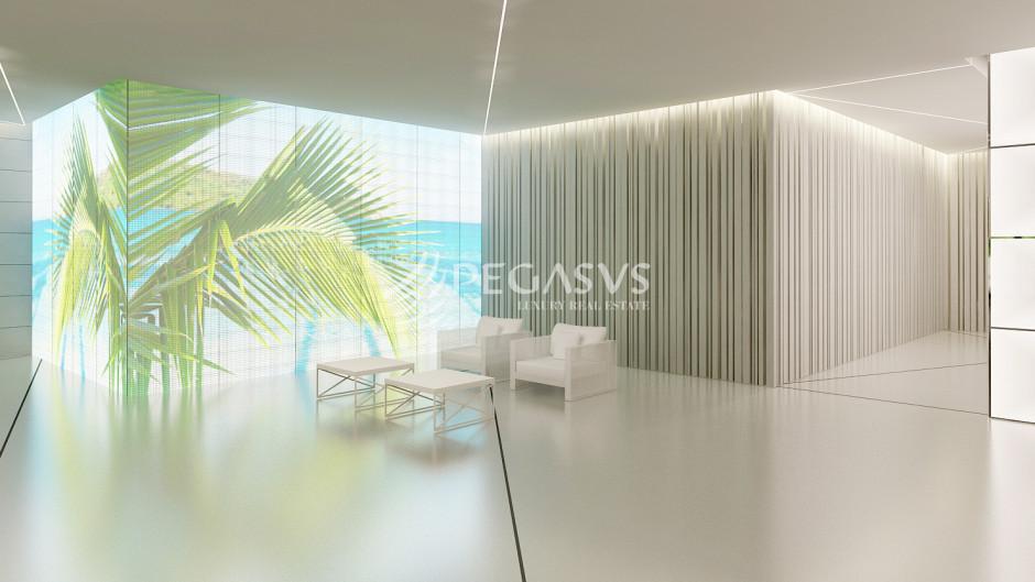 – Wide private terraces with glass railings for unobstructed views, accessible from the living and bedroom areas of most residences